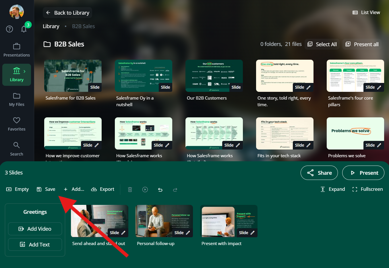 In the presentation deck at the bottom, click Save.